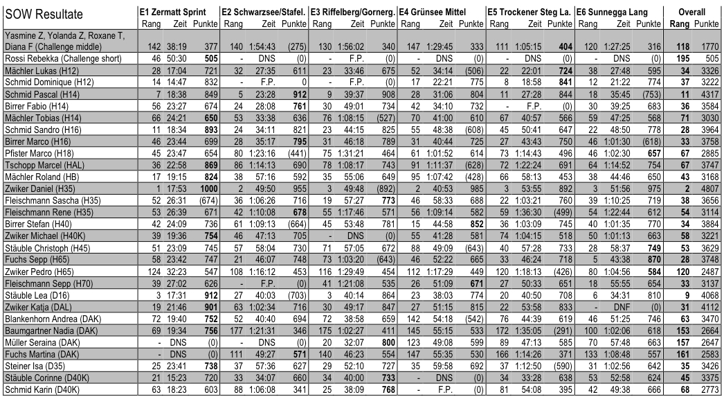 Reultate der Galgener: hier.