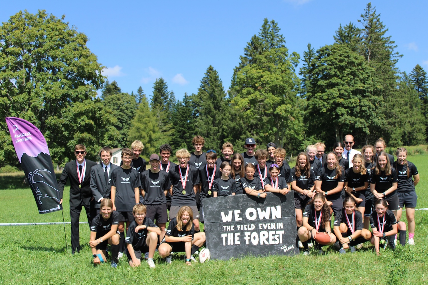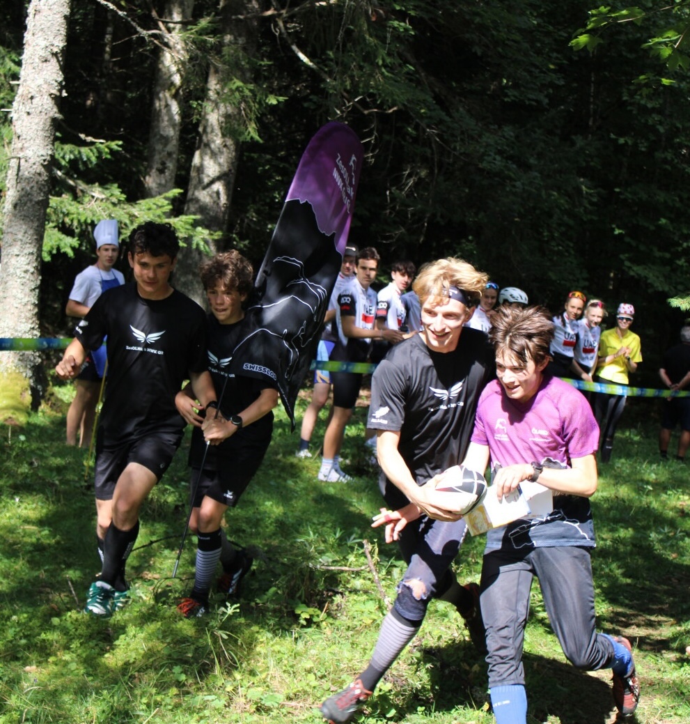 ”Ka mate, ka mate! Ka ora! Ka ora!, hää, was chund us nechsts?” So etwa tönte es in allen drei Büssli am Samstagmorgen, als es für das ZesOLNak und NWK GR/GL in die Westschweiz an den Jugendcup ging. Beim Üben des Haka-Tanzes wurden einzelne Links-Rechts-Schwächen aufgedeckt und selbstverständlich einige Talente erkannt, welche souverän im Sitzen und zwischen vielen Gepäckstücken eingeklemmt ihre perfekten Tanzmoves auspackten. Kurz vor der Ankunft wurden unsere Gesichter bemalt und unsere schwarzen Kleidungsstücke (man munkelt, dass die T-shirts auf der Capanna Basodino noch fertig geplottet wurden) übergezogen. Bereit für unseren Auftritt und mit unserem Banner bewaffnet, machten wir uns schliesslich auf den Weg zum WKZ. Wir nahmen unser Motto «We own the field, even in the forest» sehr ernst und schlugen unser Hauptquartier im Schatten zwischen den Bäumen und nicht auf der offenen Wiese auf. Kurz vor dem Massenstart der Jungs zeigten wir unsere Dominanz: Im Startkorridor brachten wir uns in Stellung und tanzten unseren fleissig geübten Haka-Tanz. Man munkelt, dass Corsins Stimmorgan bei dieser Kampfansage bereits ein erstes Mal strapaziert wurde – danke hierfür! Unsere Jungs zeigten bei der Staffel schnell, wem das Feld gehört und siegten nach einer Laufzeit von 2:31:32 mit über vier Minuten Vorsprung. Unsere Damen zeigten sich bei der Staffel eher verhaltener und begnügten sich mit dem 5. Rang aller Kader. Wir mussten schliesslich noch eine spannende Ausgangslage für den Einzellauf lassen😉. In All Blacks-Montur ging es zur Unterkunft und ans Schlafplatz-Einrichten. In der Turnhalle nahmen wir unser Motto ein zweites (beziehungsweise nach dem Männer-Sieg ein drittes) Mal wortwörtlich und platzierten uns in der Mitte der Halle, umgeben von allen anderen Kadern. Das weitere Programm war frei: Egal ob beim Fussballspielen, im Hallenbad oder beim Massieren auf den zuvor aufgeblasenen Mätteli – jede und jeder genoss die freie Zeit vor und nach dem Znacht, bis es dann schliesslich mit der Jugendcup-Party losging. Die Stimmung und die Musik waren gut, der ZesOLNak-Tanzkreis besser. Das merkte man auch daran, dass sich immer mal wieder auswertige Kadermitglieder zu uns gesellten und mit uns tanzten. Es ist und bleibt halt einfach «we own the field…»😉. / Leonie Mathis