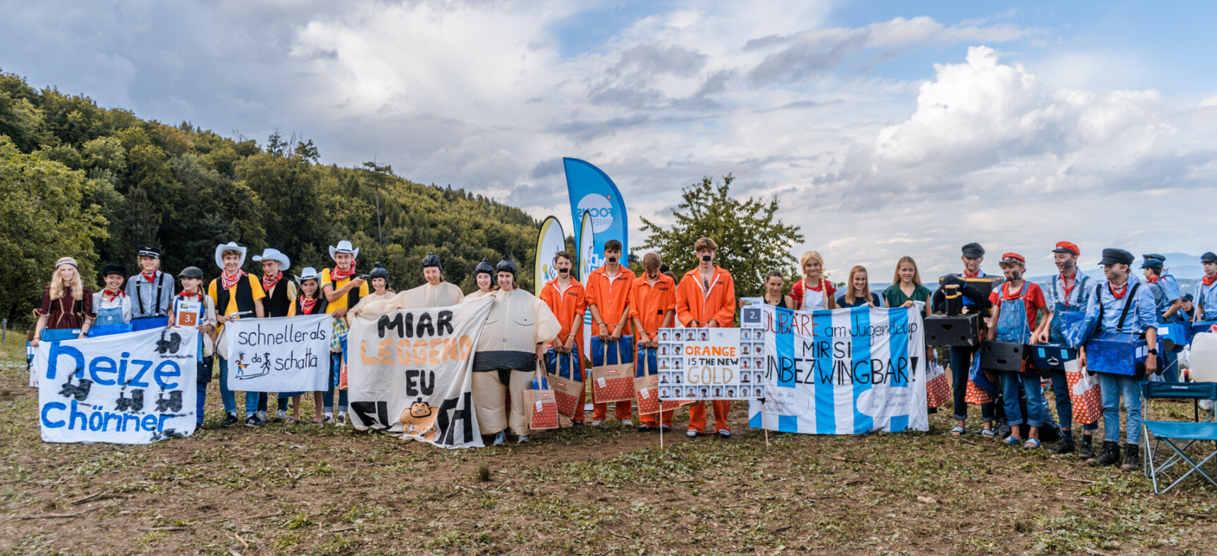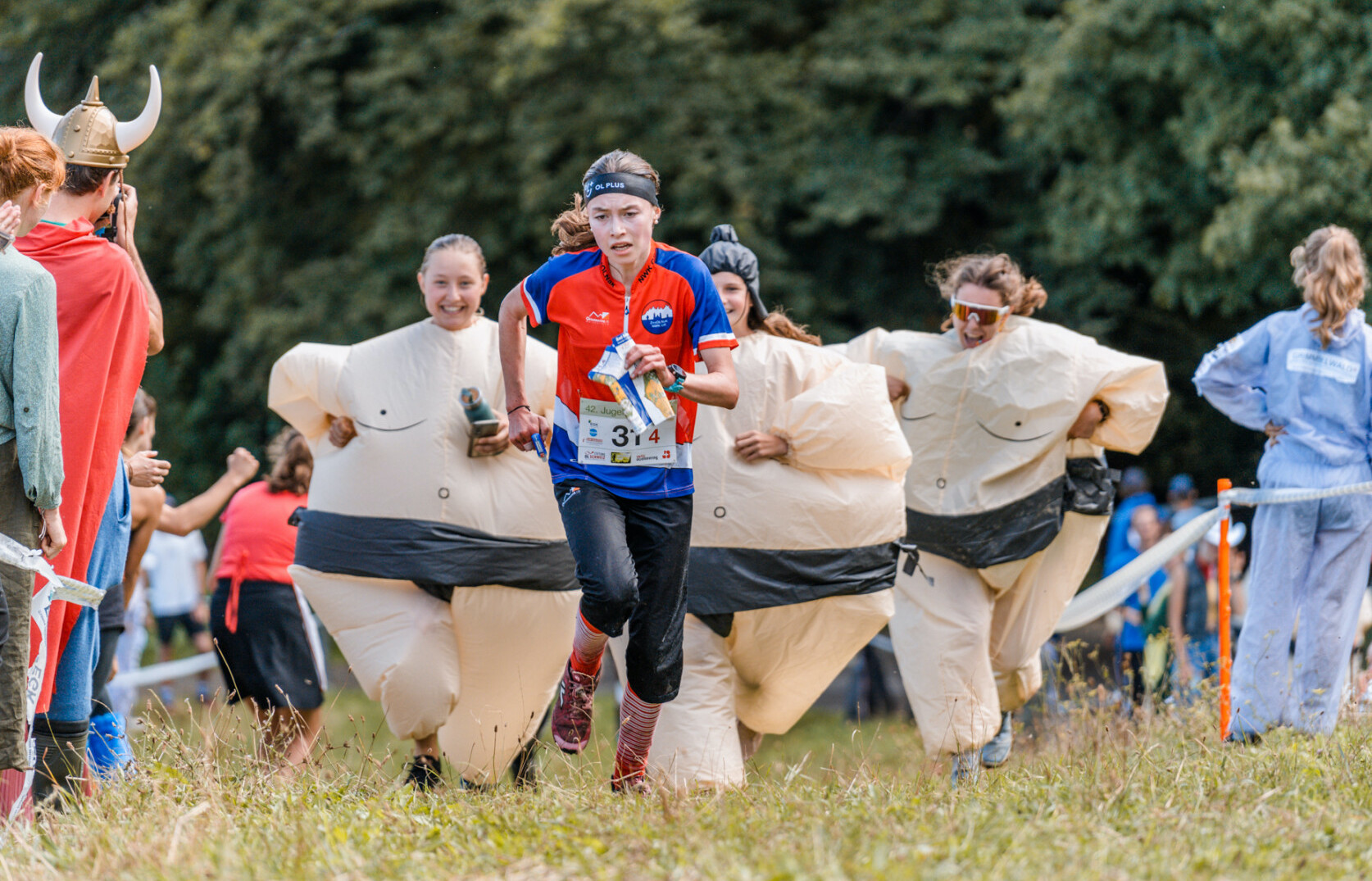 Das ganze Kader kam mit den Büslis beim Jugendcup an. Dort durften alle in ihre dicken Kostüme steigen. Denn unser Motto war Sumoringer. Auf einem Plakat welches Luisa Gartmann mitgebracht hat, stand auch noch unser Spruch „Mir leged eu Flach“. Als wir alle unsere Kostüme anhatten mussten wir noch ziemlich weit laufen, nun wissen wir warum viele dicke Menschen nicht gerne Sport betreiben. Die ersten Läufer aus den beiden ersten Teams(Elia Gartmann und Isabelle Gisler) mussten sich dann sehr schnell im Regen umziehen damit sie den Start nicht verpassen. Die Frauen Staffel startete dann, mit Isabelle solide. Sie übergab dann Nina Gujan unsere D14 Läuferin. Diese machte ein super rennen und kam als erste ins Ziel, wie schnell dicke Sumoringerinen sein können. Dann kam Mirjam Würsten die auch ein gutes Rennen zeigte doch von zwei Läuferinnen überholt wurde. Zum Schluss musste Leonie Mathis gegen das Berner Kader kämpfen, doch diese warf sie schnell aus dem Ring und die Mädchen Staffel gewann. Bei den Jungs lief es nicht so gut, Elia kam noch in guter Position zurück. Er übergab Aiden Mckenna, niemand von uns wusste wie gut er sei, weil er war das erste Mal mit dem Zesolnak unterwegs. Er überraschte uns alle, denn er kam sehr gut platziert ins Ziel. Gian-andri Müller(der dickste Sumoringer kam im Wald nicht so vorrwärts ) hatte nicht so ein guter Lauf denn er suchte sehr. Er übergab mit viel Rückstand aufs Podest an Lavio Müller, welcher ein guter Lauf gelang und damit das Aargauer Kader im Zielspurt noch überholte. Die Männer Staffel wurde nur 6er.