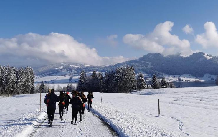 Die Züge und Busse führten uns direkt in den Wald fürs OL Training. Im Etzel machten wir passend zum Theorieinput ein Partnertraining. Eine Person rannte ohne Karte voraus und folgte den Anweisungen der hinteren Person. Die Herausforderung für die hintere Person war den Weg zum Posten so zu beschreiben, damit es verständlich war. Ein Blick auf die Karte und ein „ah ja jetzt muss ich DA durch“ reichte nicht. Die Gedanken mussten in Worte gefasst und frühzeitig (prospektiv laufen) der vorderen Person kommuniziert werden. Es war einmal eine andere Trainingsform, die durchaus mit Spass und bei gewissen mit einem Plauder-OL verbunden war. Der Abschluss machte ein Downhill OL oder etwa besser UPHILL… weil es waren etliche tiefe Bachtäler zu durchqueren.