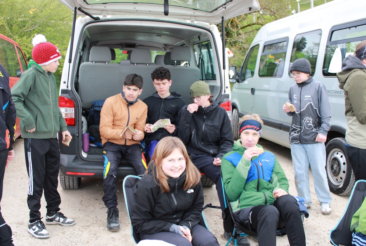 Als alle am Morgen um 7:30 im Aufenthaltsraum erschienen, gab es wie immer ein leckeres Frühstück mit Müsli Brot und OVO-Aufstrich. Nach einer kurzen Pack-Session ging es um 9:00 mit den Büssli los auf die etwas längere Anfahrt. Auch wenn sich ein Büssli noch verfahren hatte waren doch alle Rechtzeitig beim Treffpunkt. Danach gab es noch eine kleine Einführung und es wurden zufällige Teams gemacht. Das Format war, dass am Anfang ein Massenstart mit DH14 und D16 die dann ihren Teamkollegen übergaben. Nachdem sich alle Läufer wieder gestärkt hatten, gab es einen zweiten Massenstart mit den älteren Läufern der Teams, die dann an die jüngeren Läufer übergaben. Nach einem Lunch im Gelände machten wir uns auf den Weg zu einem kleinen See, wo wir uns noch kurz abkühlen konnten. Ein Französisches Paar fand es nicht so lustig, dass wir unsere Sachen neben ihnen deponiert hatten. Danach ging es zurück zur Unterkunft, wo die Jahrgänge 2009 und älter entscheiden mussten, ob sie das freiwillige Normal-O Training auch noch machen wollen. Die, die das Nachmittagstraining nicht mehr absolvieren wollten, hatten dann einen freien Nachmittag den wir mit Ping Pong, One Touch und sonstigen Aktivitäten füllten. Als dann alle wieder zurück waren, spielten ein Paar Tichu die anderen Ping Pong und einige nutzten das W-Lan aus. Nach einem guten Dehnen fragten sich alle, was die Küche wohl wieder auf den Tisch zaubert. Es gab leckere Burger. Etwas später ging es dann mit dem Abendprogramm los, wir mussten in Gruppen Musikvideos nachstellen. Am Abend waren die Bettzeiten dank der neuen Nachtruhe sehr unterschiedlich. / Florian Steiner