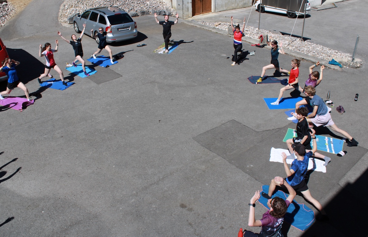 Den Samstagmorgen starteten wir mit einem leckeren Frühstück und den Informationen zum Tag. Das Morgenprogramm bestand aus einem ‚Middle-Training‘ in Corcelles, wo wir nach dem Frühstück und etwa 10 Minuten Anfahrt ankamen. Die Bahnen beinhalteten sowohl lange Postenverbindungen als auch kleine, technische Gebiete, wo klare Anhaltspunkte Mangelware waren. Nach einem für alle Läufer und Läuferinnen spannenden ‚Middle- Training‘ fuhren wir zurück ins Lagerhaus. Gestärkt durch einen feinen Lunch starteten wir in den Nachmittag. Die freie Zeit nutzten wir zum Kubb- und Fussballspielen. Danach folgte anstelle von Rumpfkraft, was auf dem Programm stand, eine amüsante und lehrreiche Yogalektion mit Thomas. Einige haben erkannt, dass es bei der Beweglichkeit noch Potenzial nach oben gäbe… Nach dem Yoga fand im Lagerhaus der Indoor-OL, organisiert von Patrick, statt. Wie ein Rudel gestresste Osterhasen ‚hühnerten‘ wir durchs Lagerhaus und suchten in allen Ecken und Enden und Kühlschränken und… nach Posten. Die Zeit vor dem Abendessen wurde zum Duschen und ‚‘Frischmachen‘ genutzt. Somit konnte der Abend in entspannter Atmosphäre genossen werden. Alle gingen zufrieden schlafen. / Linus Wymann