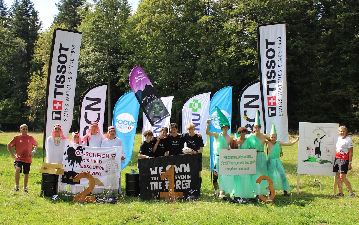 ”Ka mate, ka mate! Ka ora! Ka ora!, hää, was chund us nechsts?” So etwa tönte es in allen drei Büssli am Samstagmorgen, als es für das ZesOLNak und NWK GR/GL in die Westschweiz an den Jugendcup ging. Beim Üben des Haka-Tanzes wurden einzelne Links-Rechts-Schwächen aufgedeckt und selbstverständlich einige Talente erkannt, welche souverän im Sitzen und zwischen vielen Gepäckstücken eingeklemmt ihre perfekten Tanzmoves auspackten. Kurz vor der Ankunft wurden unsere Gesichter bemalt und unsere schwarzen Kleidungsstücke (man munkelt, dass die T-shirts auf der Capanna Basodino noch fertig geplottet wurden) übergezogen. Bereit für unseren Auftritt und mit unserem Banner bewaffnet, machten wir uns schliesslich auf den Weg zum WKZ. Wir nahmen unser Motto «We own the field, even in the forest» sehr ernst und schlugen unser Hauptquartier im Schatten zwischen den Bäumen und nicht auf der offenen Wiese auf. Kurz vor dem Massenstart der Jungs zeigten wir unsere Dominanz: Im Startkorridor brachten wir uns in Stellung und tanzten unseren fleissig geübten Haka-Tanz. Man munkelt, dass Corsins Stimmorgan bei dieser Kampfansage bereits ein erstes Mal strapaziert wurde – danke hierfür! Unsere Jungs zeigten bei der Staffel schnell, wem das Feld gehört und siegten nach einer Laufzeit von 2:31:32 mit über vier Minuten Vorsprung. Unsere Damen zeigten sich bei der Staffel eher verhaltener und begnügten sich mit dem 5. Rang aller Kader. Wir mussten schliesslich noch eine spannende Ausgangslage für den Einzellauf lassen😉. In All Blacks-Montur ging es zur Unterkunft und ans Schlafplatz-Einrichten. In der Turnhalle nahmen wir unser Motto ein zweites (beziehungsweise nach dem Männer-Sieg ein drittes) Mal wortwörtlich und platzierten uns in der Mitte der Halle, umgeben von allen anderen Kadern. Das weitere Programm war frei: Egal ob beim Fussballspielen, im Hallenbad oder beim Massieren auf den zuvor aufgeblasenen Mätteli – jede und jeder genoss die freie Zeit vor und nach dem Znacht, bis es dann schliesslich mit der Jugendcup-Party losging. Die Stimmung und die Musik waren gut, der ZesOLNak-Tanzkreis besser. Das merkte man auch daran, dass sich immer mal wieder auswertige Kadermitglieder zu uns gesellten und mit uns tanzten. Es ist und bleibt halt einfach «we own the field…»😉. / Leonie Mathis